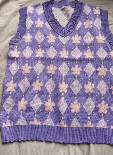 A Relaxed fit Sweater Vest in an original argyle pattern design by me to reflect the spring season! Finished with a scallop rib detail on the neckline and hem.
